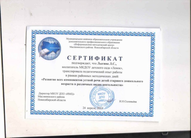 Воспитателя МКДОУ детский сад "Ленок" комбинированного вида